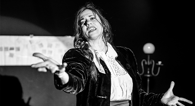 - Amb humor i la naturalitat, la intèrpret i creadora es desdobla en fins a set veus diferents, que posaran en dubte un espectacle que la actriu està enllestint